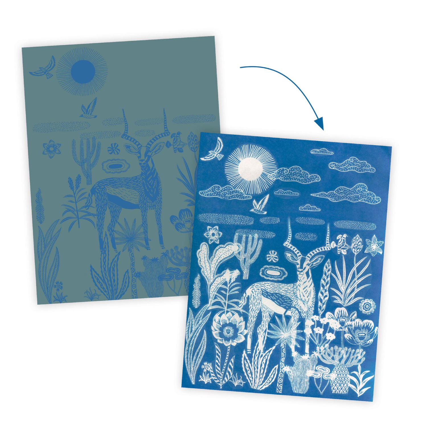• An activity to repeat again and again thanks to paper refills for cyanotype (sold separately).