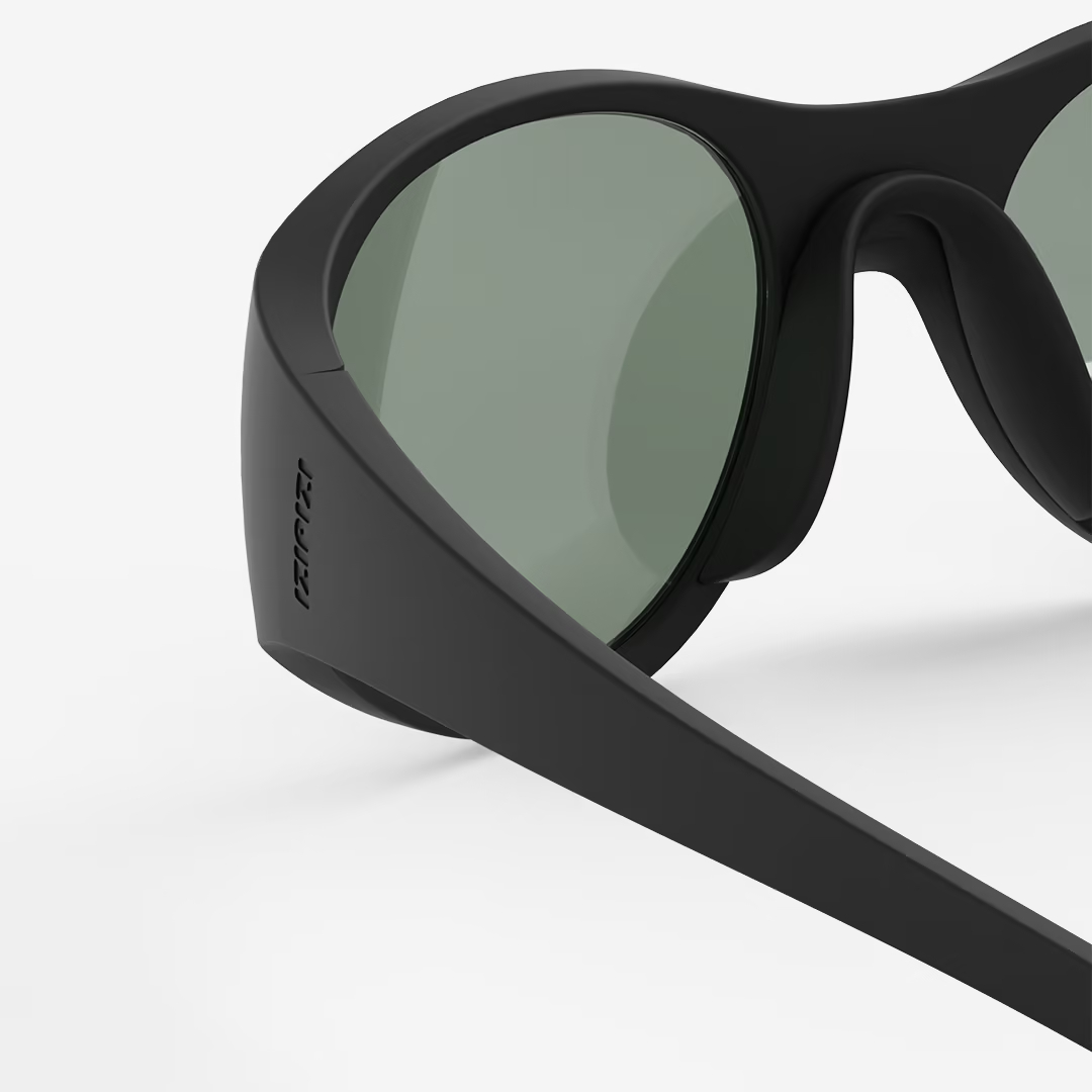 Versatile sports sunglasses particularly suited for water sports thanks to their water-repellent, salt-resistant, and scratch-resistant lenses – 100% UV category 3 polarized lenses, VLT 12% in sunny conditions – Bio-sourced frame – Unisex, universal style – Non-corrective lenses – Cleaning cloth included in the box