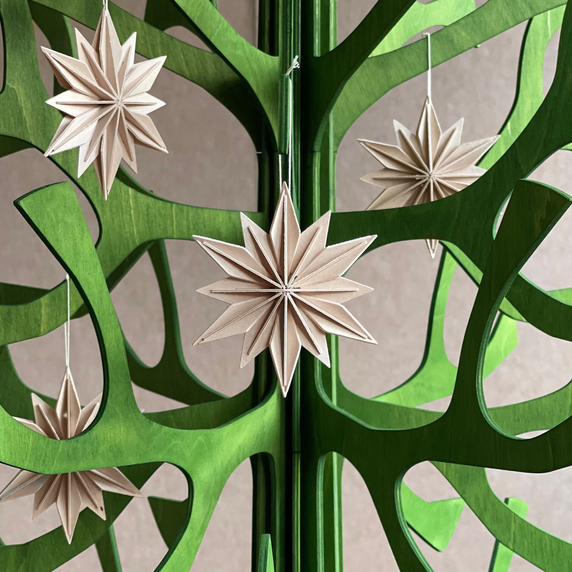 The kit of 4 Lovi Decor Stars 10cm is a delightful set of wooden Christmas ornaments, perfect for adding warmth and natural details to your seasonal décor. Hang them as delicate ornaments on your Christmas tree, use them as tree toppers for smaller trees, or place them as gentle accents around your holiday setting. These natural wooden stars bring a soft glow to both traditional and modern Christmas interiors.