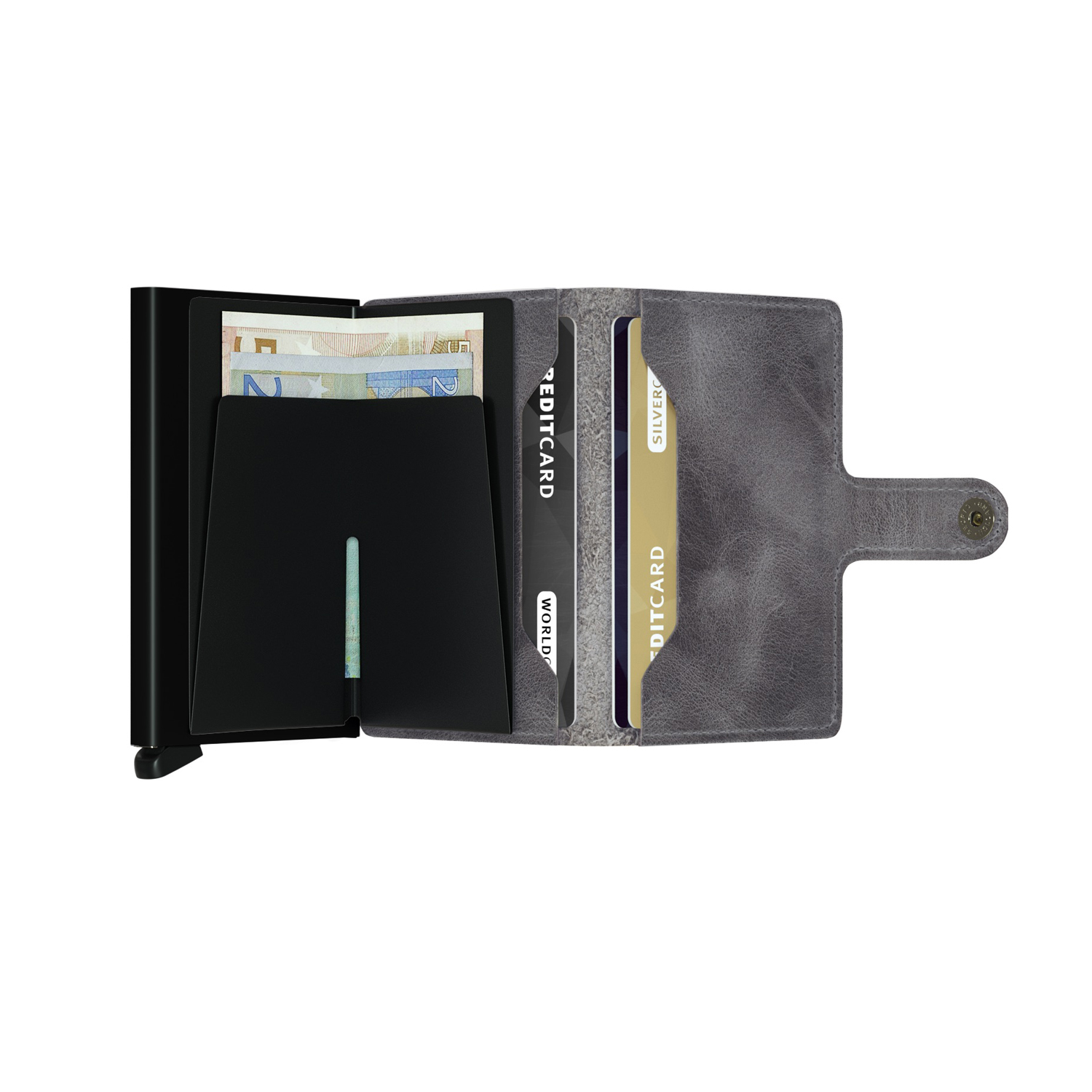 Slide out your cards with one simple motion, thanks to Secrid’s patented mechanism.