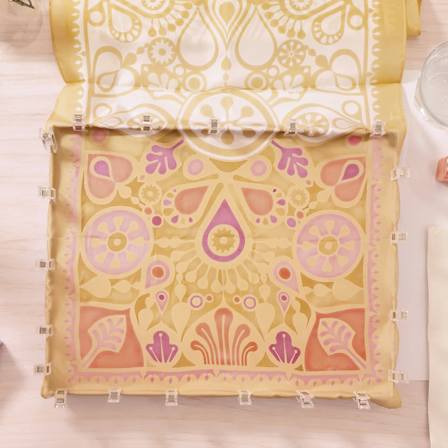 - Try your hand at silk painting and bring a one-of-a-kind scarf to life by letting the colours spread freely, at your own pace, at home.