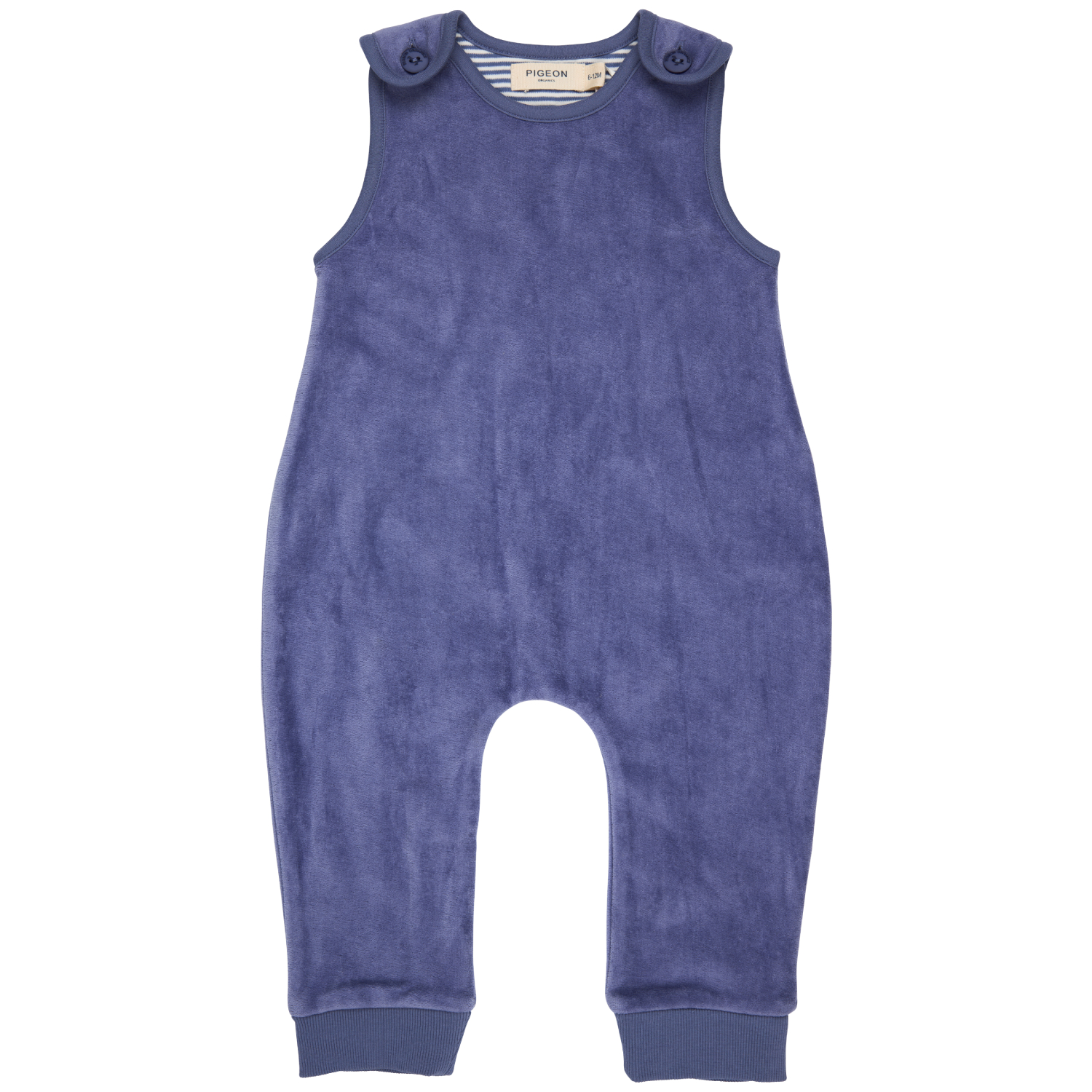 Cosy playsuit in luxurious velour, fully lined in soft striped jersey.
